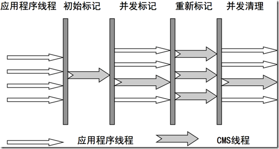并发标记是最主要的标记过程,而这个过程是并发执行的,可以与应用程序线程同时进行,初始标记和重新标记虽然不能和应用程序并发执行,但这两个过程标记速度快,时间短,所以对应用程序不会产生太大的影响。最后并发清除的过程,也是和应用程序同时进行的,避免了应用程序的停顿。