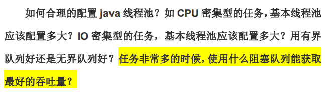 1)使用有界队列时,有新任务要执行,若线程池线程数小于corePoolSize,则优先创建线程,若大于corePoolSize,把任务加入队列,
