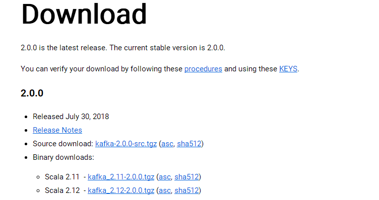 选择合适版本下载,注意不同的Kafka版本对jdk版本是有要求的
