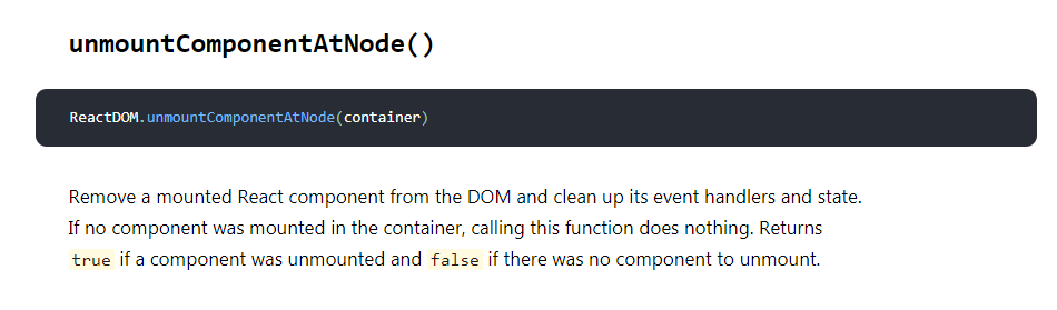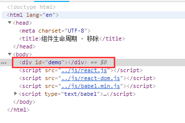 ReactDOM.unmountComponentAtNode(document.getElementById('demo')) : 移除demo容器中的组件