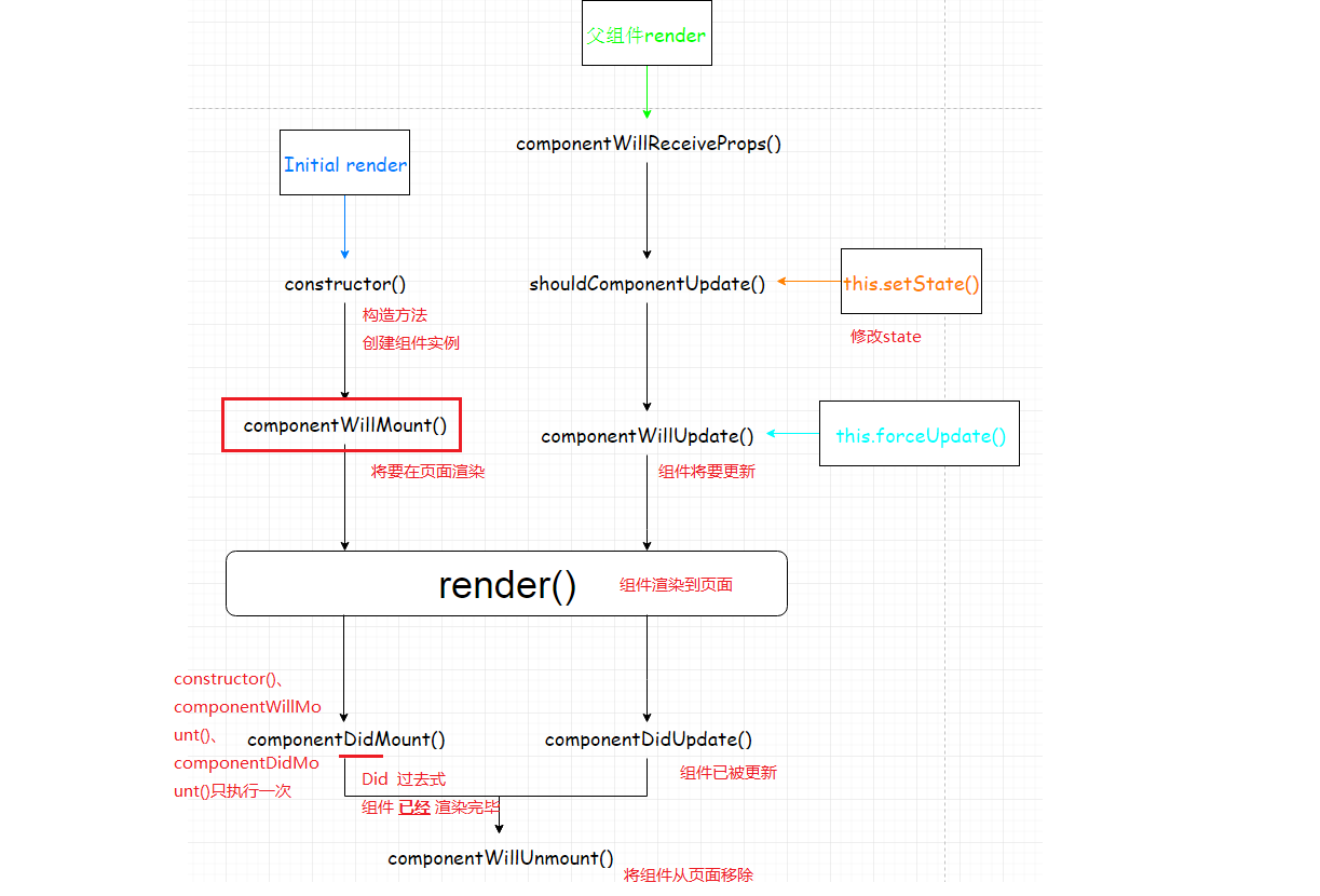 constructor、componentWillMount、componentDidMount只调用一次