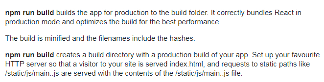 “build”: “react-scripts build”,这个命令的意思也是一样的同上,调用了build.js