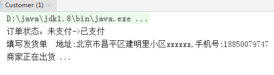 System.out.println("订单状态:未支付->已支付");
