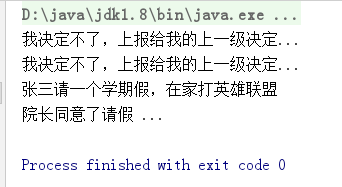 System.out.println("我决定不了,上报给我的上一级决定...");
