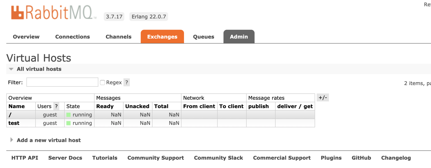 Virtual host: 出于多租户和安全因素设计的,把AMQP的基本组件划分到一个虚拟的分组中,类似于网络中