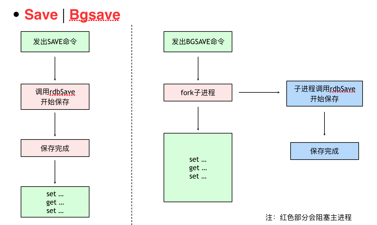 - bgsave: 在后台异步执行快照操作,这个操作不会阻塞客户端的请求 fork一个子进程