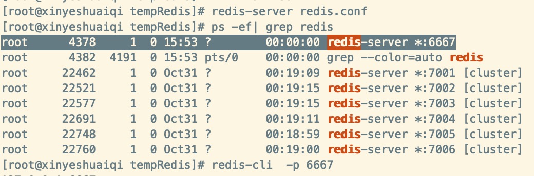[root@xinyeshuaiqi tempRedis]# redis-cli -p 6667