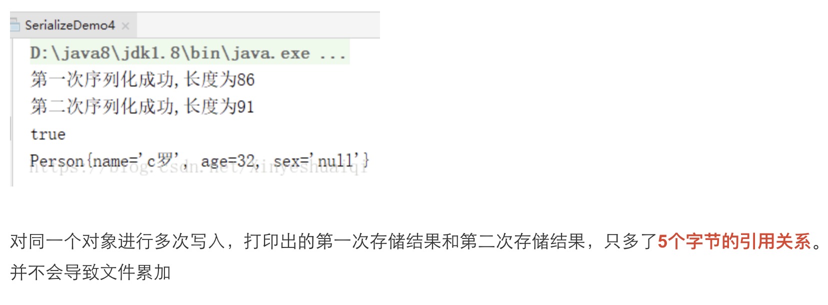 System.out.println("第二次序列化成功,长度为"+new File("person").length());