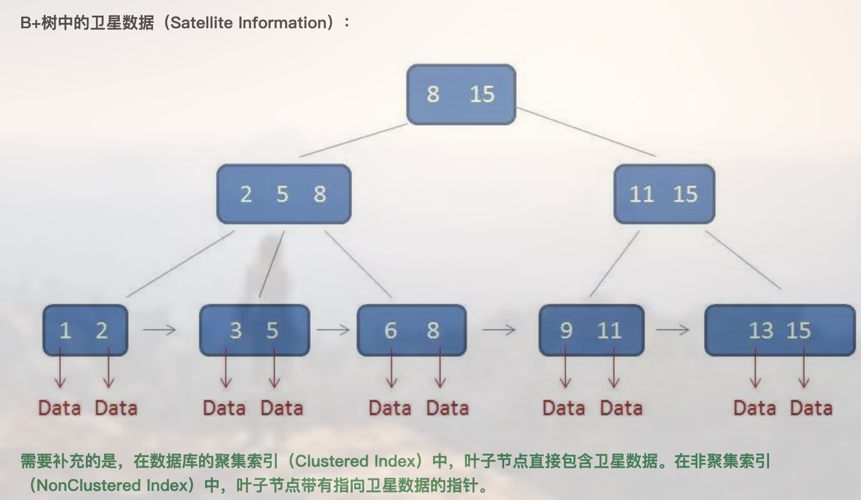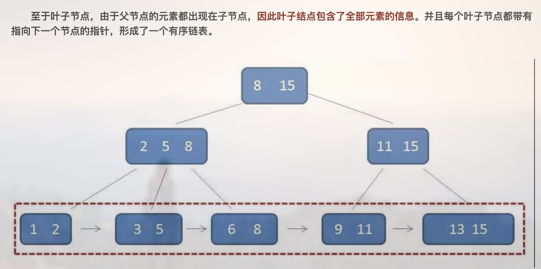 叶子节点包含数据