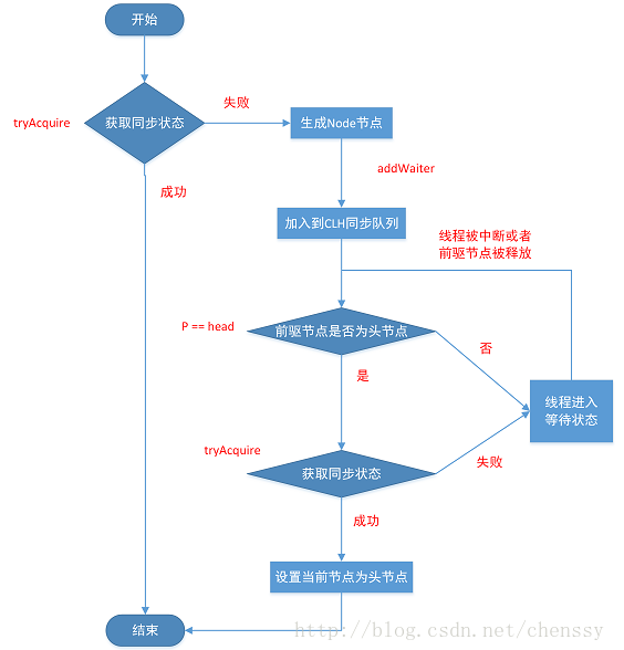 acquireQueued  当前线程进入同步队列后,就会自旋,每个节点都会观察,当条件满足,获取到同步状态后,就可以从这个自旋过程中退出,否则会一直执行下去。