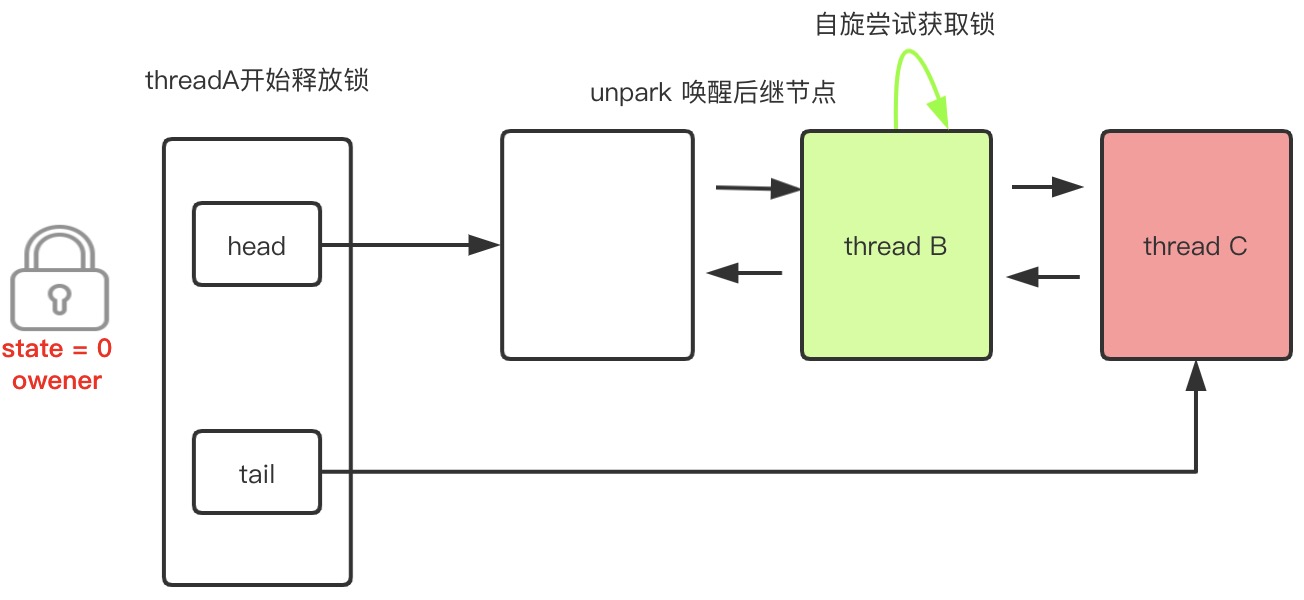 3,释放锁后,通知第一个有效的后继节点,解阻塞,LockSupport.unpark