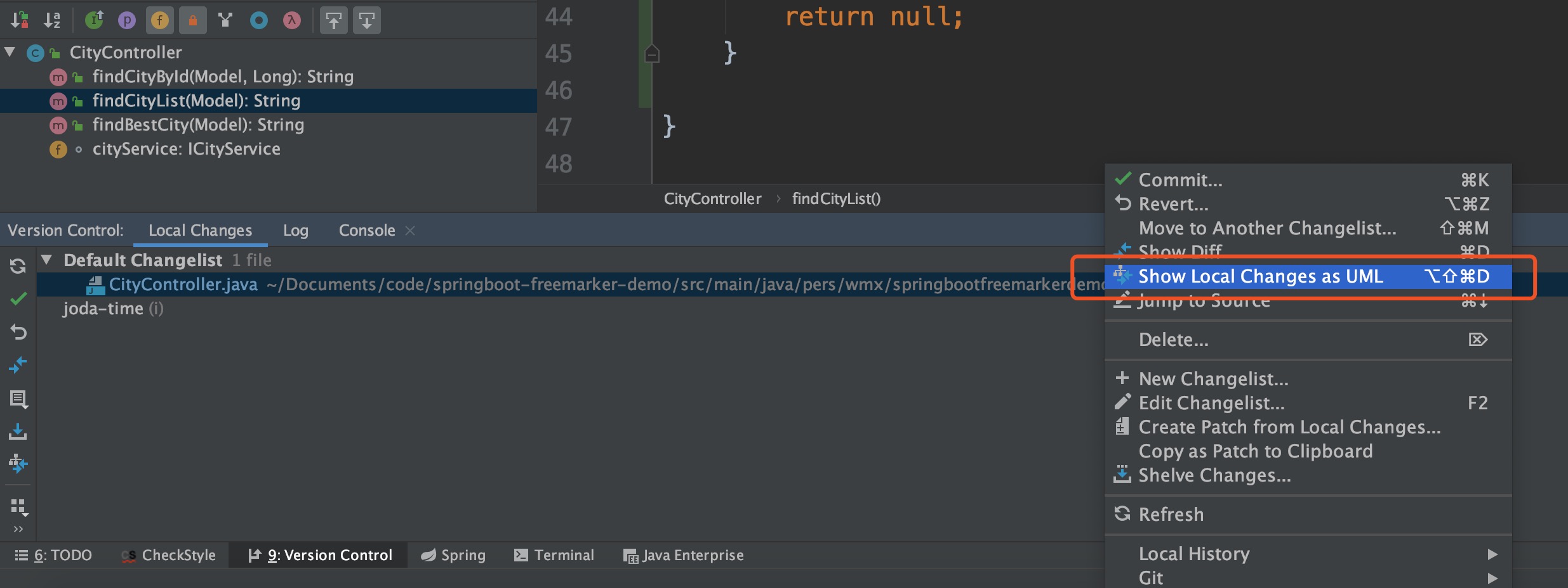 show local changes as UML 以类图的形式展示代码变动