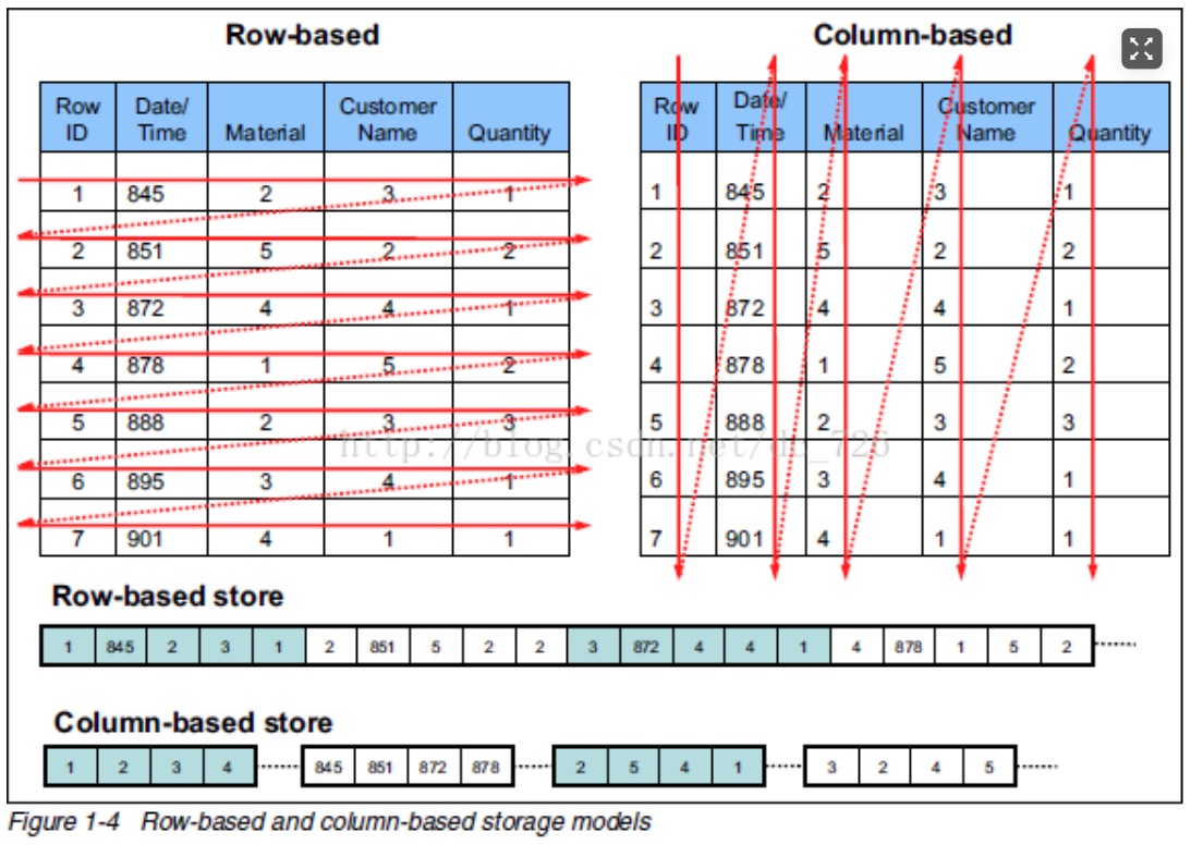 仔细看看下面我找的两张图大概就清楚行式数据库和列式数据库的区别了
