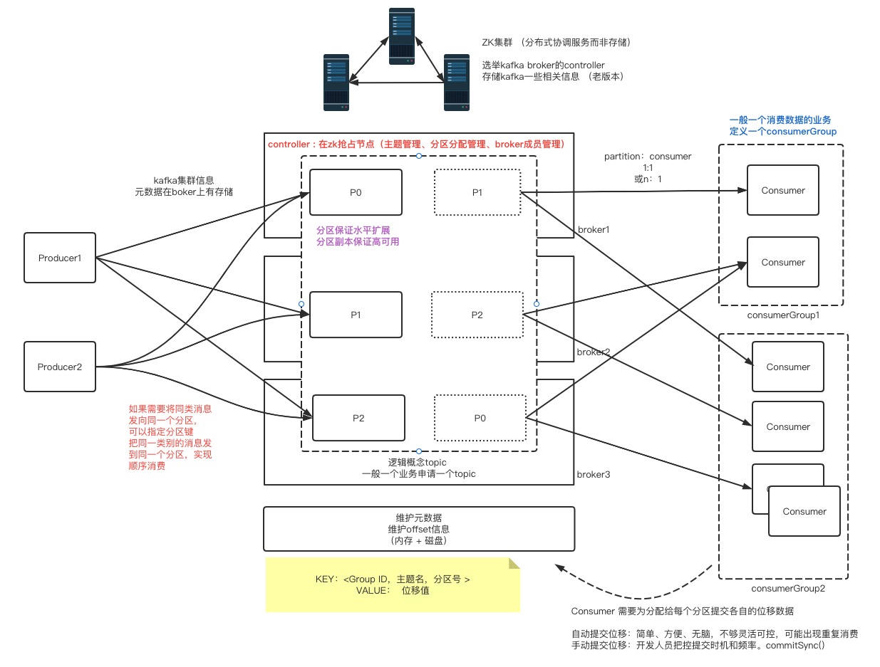 之前老版本Kafka集群的一些信息很多都存储ZK上,对ZK负担过重,新版本大多都存储在broker本身。