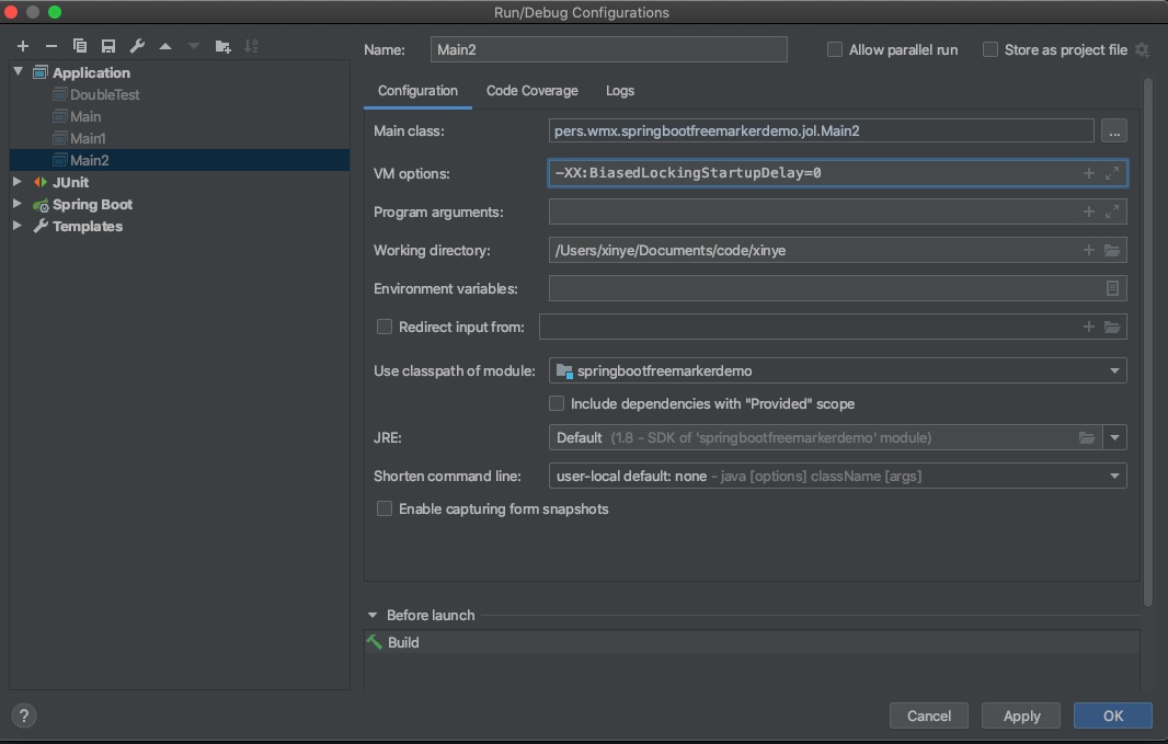现在把时延调成0,默认已启动对象就上偏向锁,我们实验下