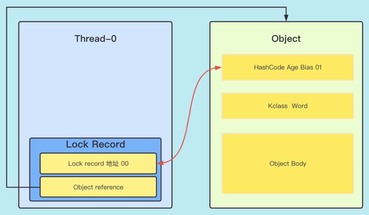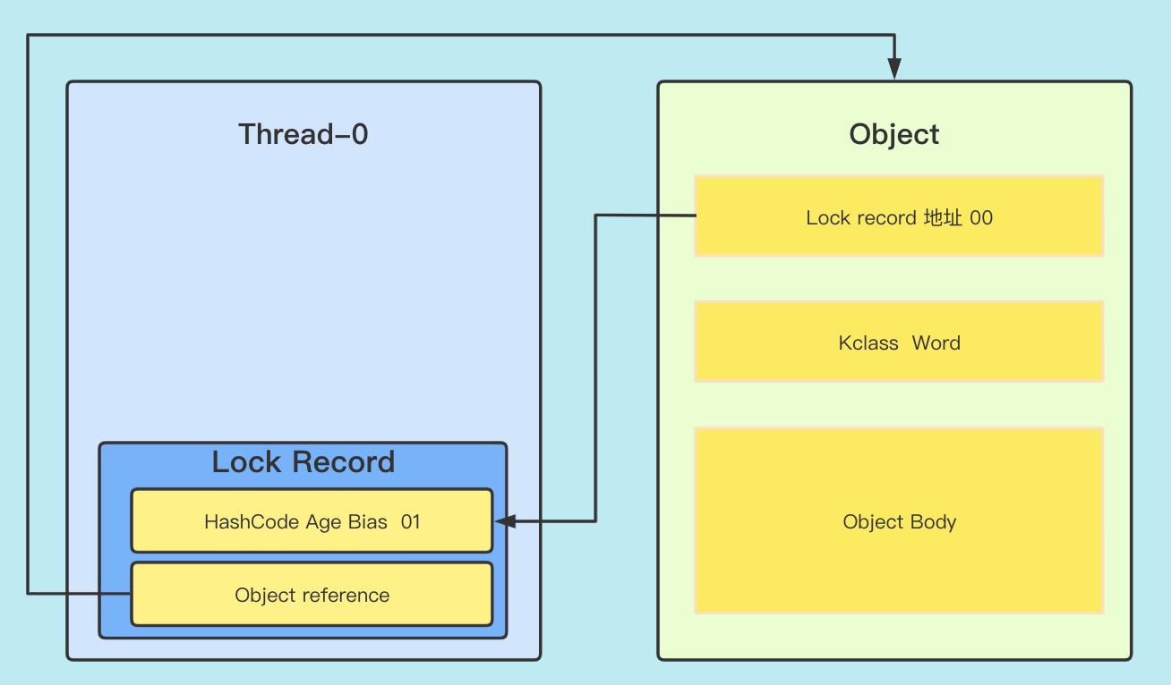 哪个线程抢到锁了,需要在对象上有一个标记,轻量级锁对象对象头上需要存储线程的线程栈中的锁记录(lock record)
