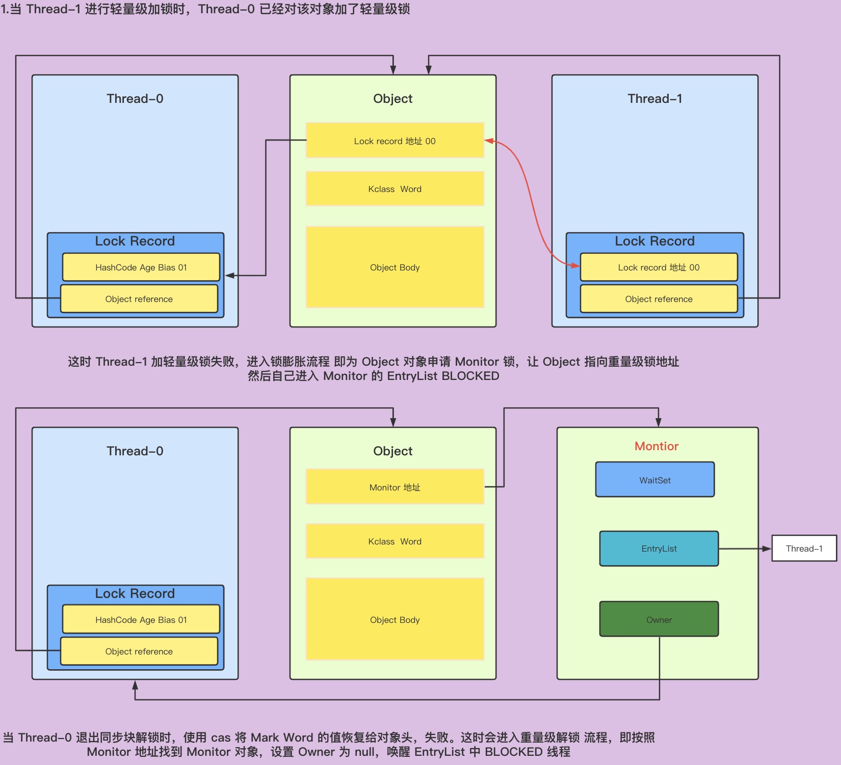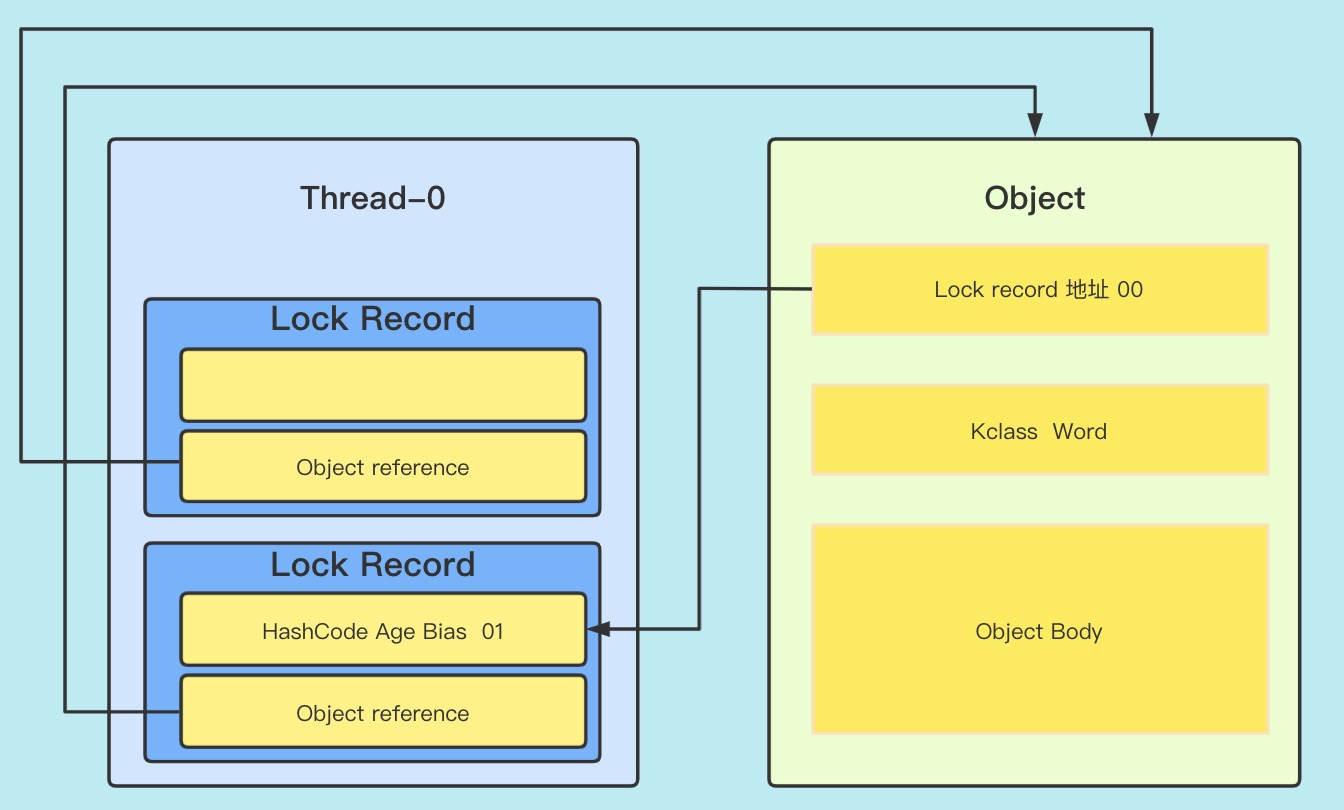 如果有锁重入的话,还会生成一个lock record, 重入计数加一
