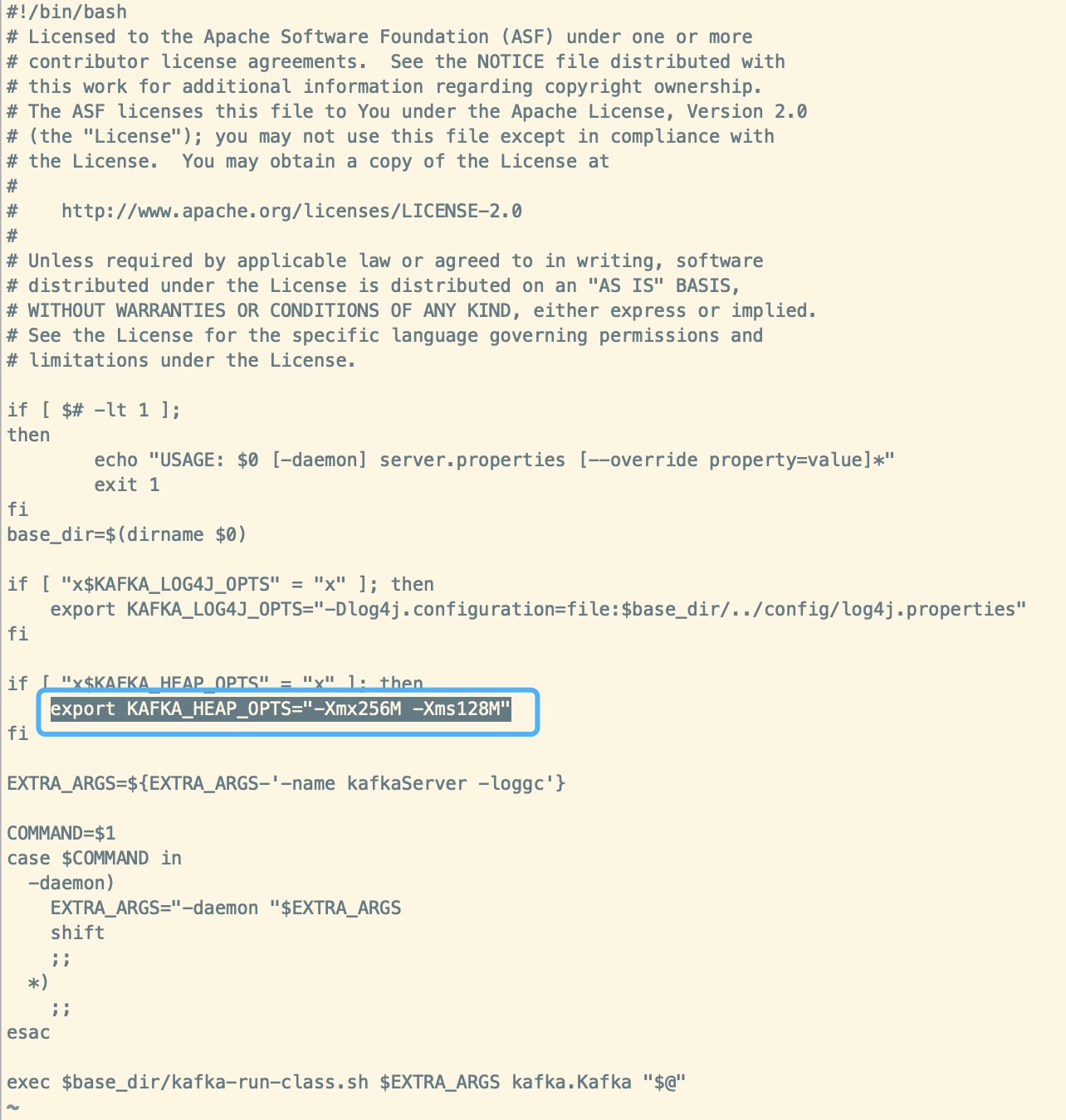 export KAFKA_HEAP_OPTS="-Xmx256M -Xms128M"