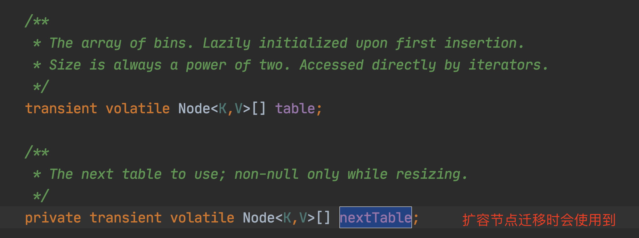 static final int MOVED = -1; // hash for forwarding nodes
