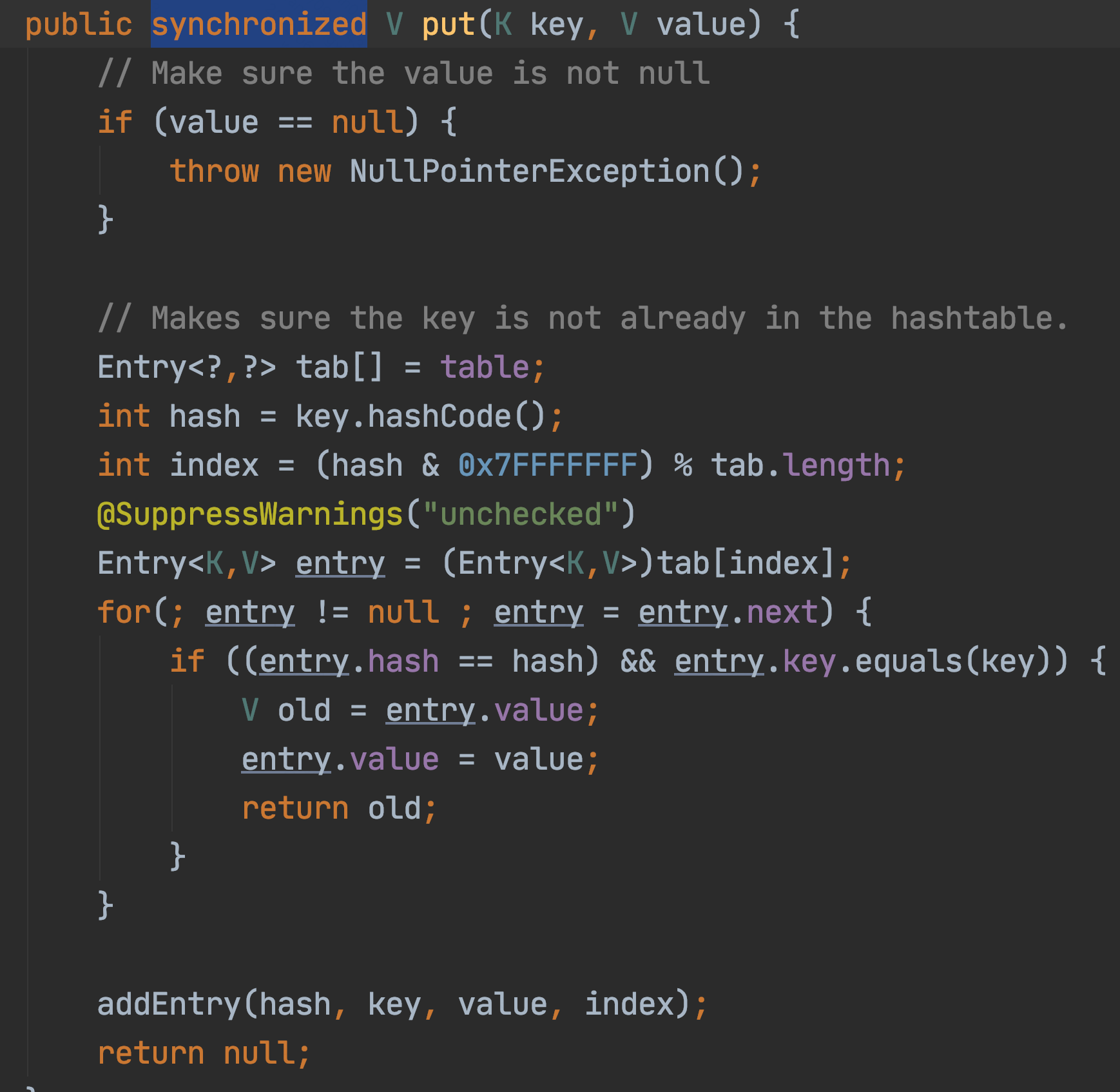 final V putVal(K key, V value, boolean onlyIfAbsent) {