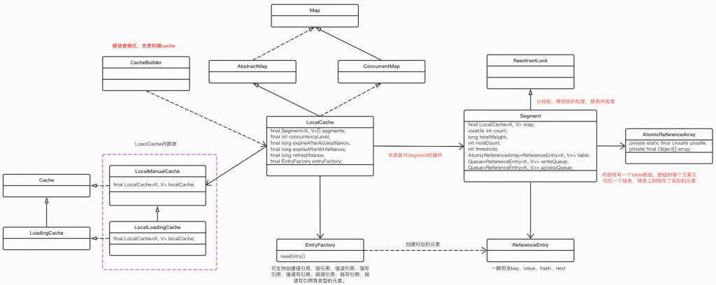 LocalCache本身是一个Map,内部封装了Segment,通过分段锁,降低锁的粒度,提高并发度