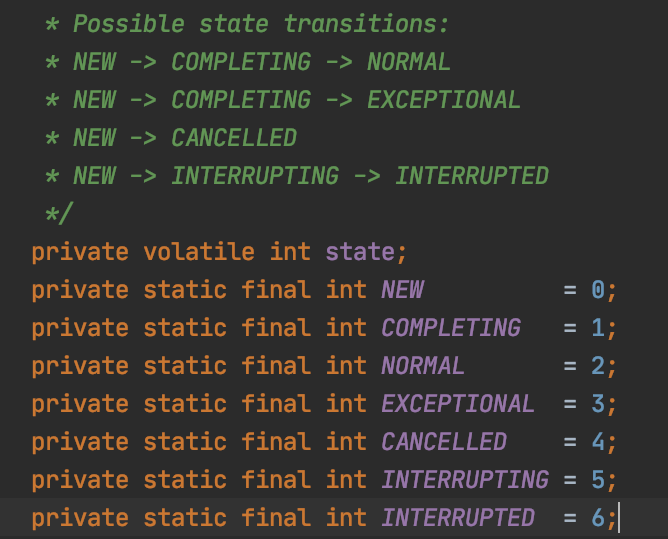 if (UNSAFE.compareAndSwapInt(this, stateOffset, NEW, COMPLETING)) {